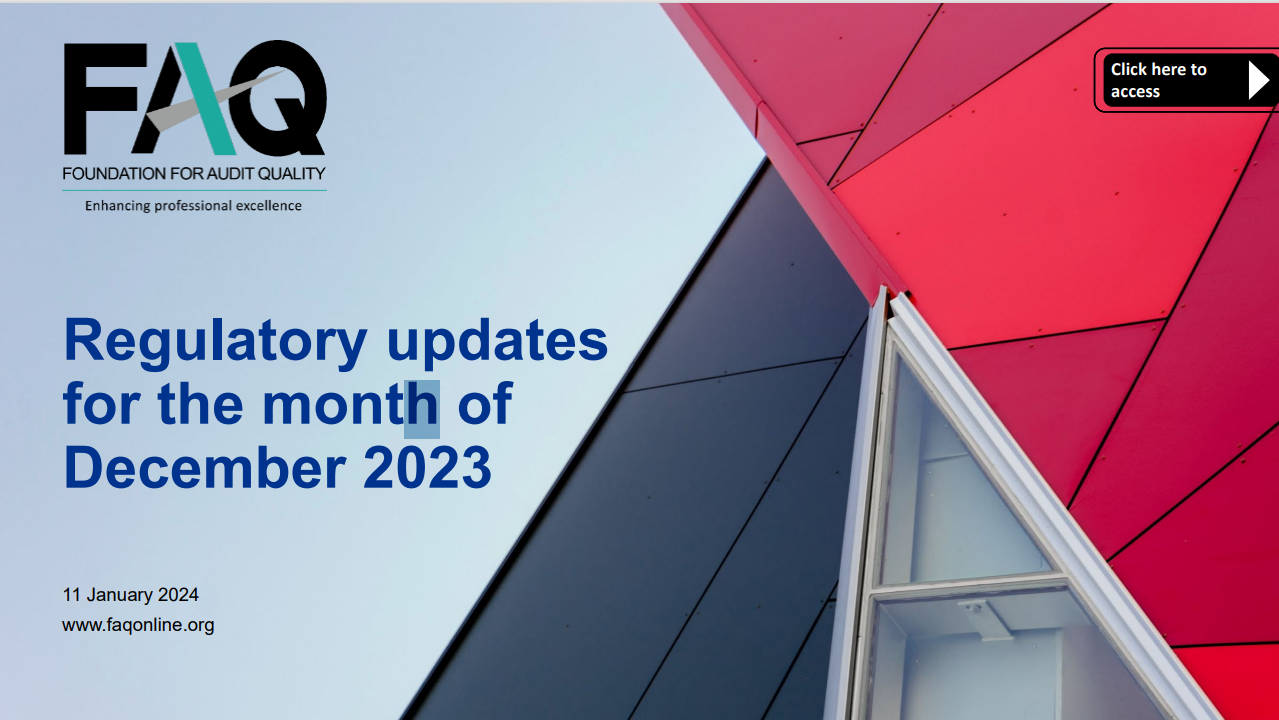 The regulatory updates publication issued by the Foundation for Audit Quality (FAQ) highlights the latest developments in accounting, auditing and regulatory developments in India and internationally. This month’s edition covers some of the important updates on accounting, auditing and regulatory matters and other discussion/consultation papers from regulators for the period from 1 December 2023 to 31 December 2023.